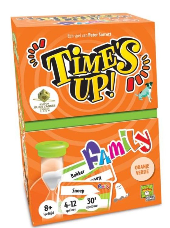 Time's Up versie waarmee de ganse familie plezier beleeft en in teams wordt gespeeld. Een schitterend en grappig familiespel dat bestaat uit 3 rondes.