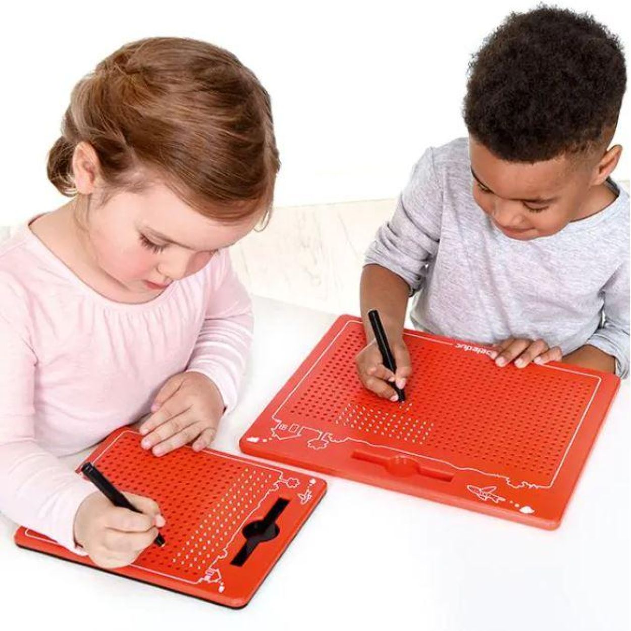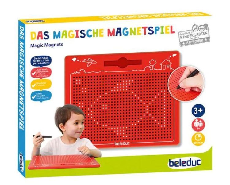 De magnetische pen trekt de kraaltjes naar het oppervlak van het bord. Op deze manier kunnen vormen, patronen en lijnen worden gecreëerd. Fantastisch schrijfbord voor creatieve experimenten zoals tellen en...