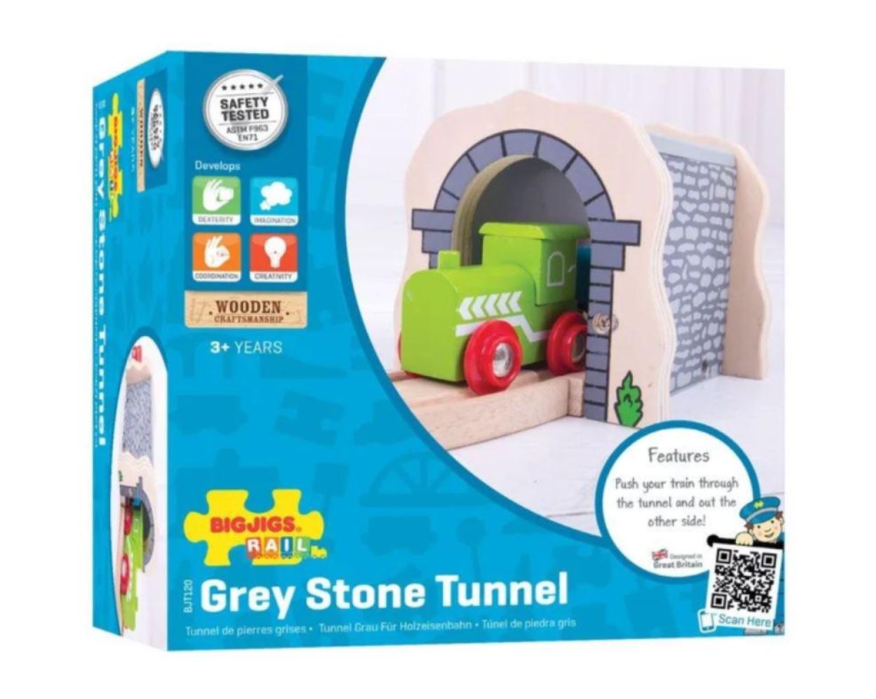 Tunnel onder de bergen zodat treinen verre verplaatsingen kunnen maken. Deze tunnel is een mooie aanvulling op jouw Bigjigs Treinsets. Afmetingen: 10 x 10 x 10,5 cm
