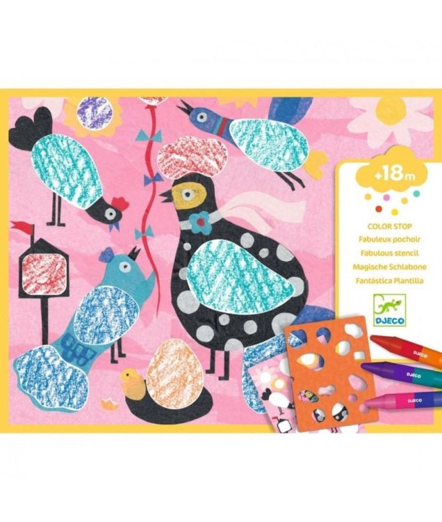 Inclusief: 3 x 4 kleurplaten, 3 dubbelzijdige wasco's, 3 sjablonen.