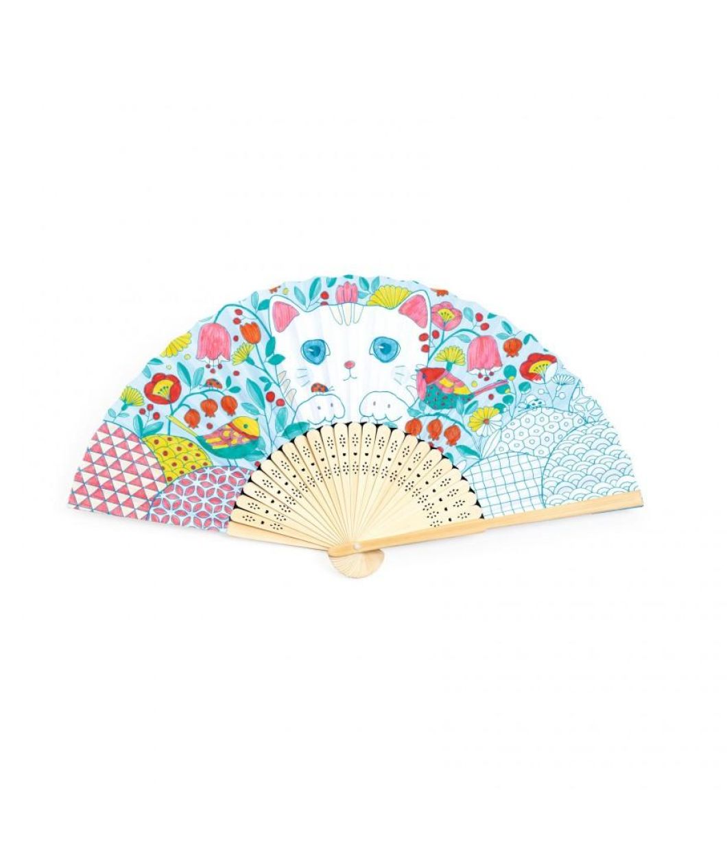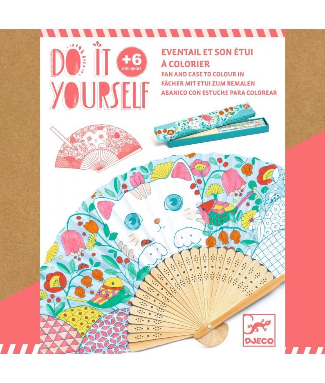 Stijlvol knutselpakketje van Djeco waarmee je 1 waaier met opbergdoosje kan maken. Je kiest zelf hoe je het doosje en waaiertje inkleurt.