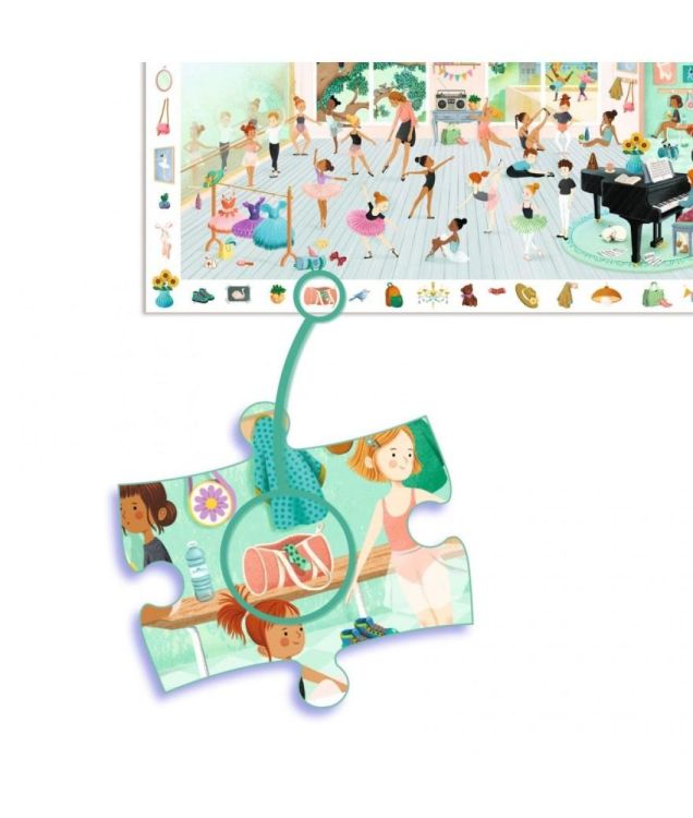 Een observatiepuzzel van Djeco van 100 stukjes om de dansschool te ontdekken waar jonge dansers oefenen om de sterren van de opera te worden. Het kind maakt de puzzel en...