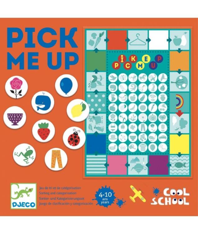 Pick Me Up van Djeco is een sorteer -en indelingsspel. Tijger, sokken, gieter... Wat zijn de overeenkomsten tussen al deze afbeeldingen? Een sorteerspel waarbij het kind zijn kennis van taal,...