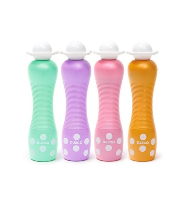 Grote schuimmarkers om stipjes te zetten met parelmoereffect. Door hun ergonomische vorm passen ze gemakkelijk in de handjes van de kleintjes om mooie tekeningen of kleurplaten te maken. Wasbare inkt...