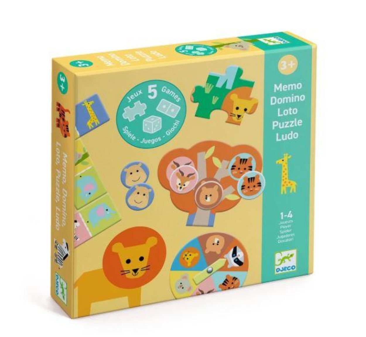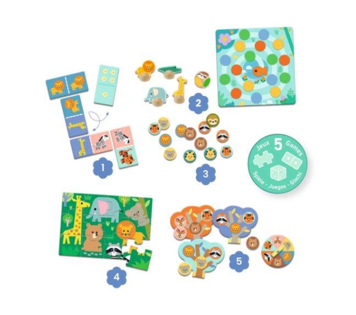 Een complete set met 5 onmisbare educatieve spellen: memory, lotto, domino, puzzel (12 stukjes) en een parcoursspel. Perfect om kinderen te vermaken terwijl ze hun logisch denken, geheugen en observatievaardigheden...
