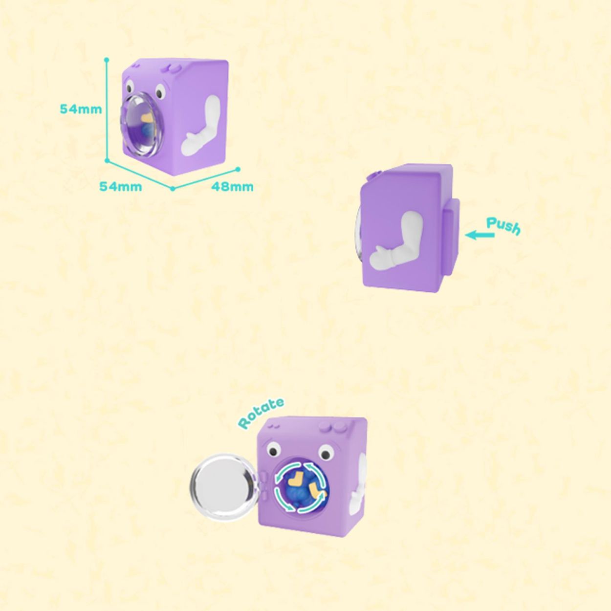 Eindeloos draaien en klikken met deze vrolijke handzame Fidgets. Druk om de trommel te draaien. 3 jaar en ouder. Afmetingen: 4,8 x 5,4 x 5,4 cm.