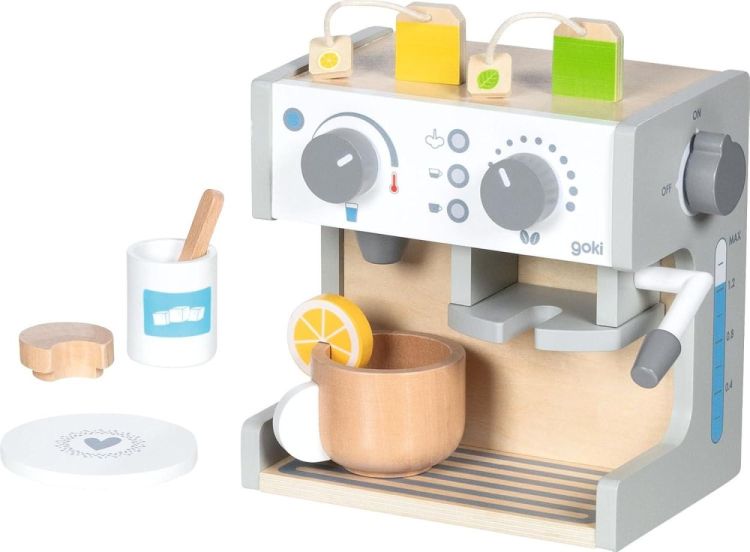 De koffie- en theemachine van GOKI past perfect in elke speelkeuken en stimuleert fantasie, communicatie en motorische vaardigheden. Een prachtig cadeau voor kleine barista’s en theeliefhebbers.