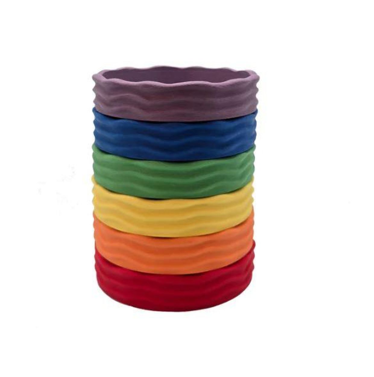 Sorteerbakjes met het herkenbare wave-patroon. Ze stapelen makkelijk op elkaar en liggen fijn in kleine kinderhanden. Vul ze met sensorisch materiaal, sorteer kleuren of gebruik ze om van alles te...