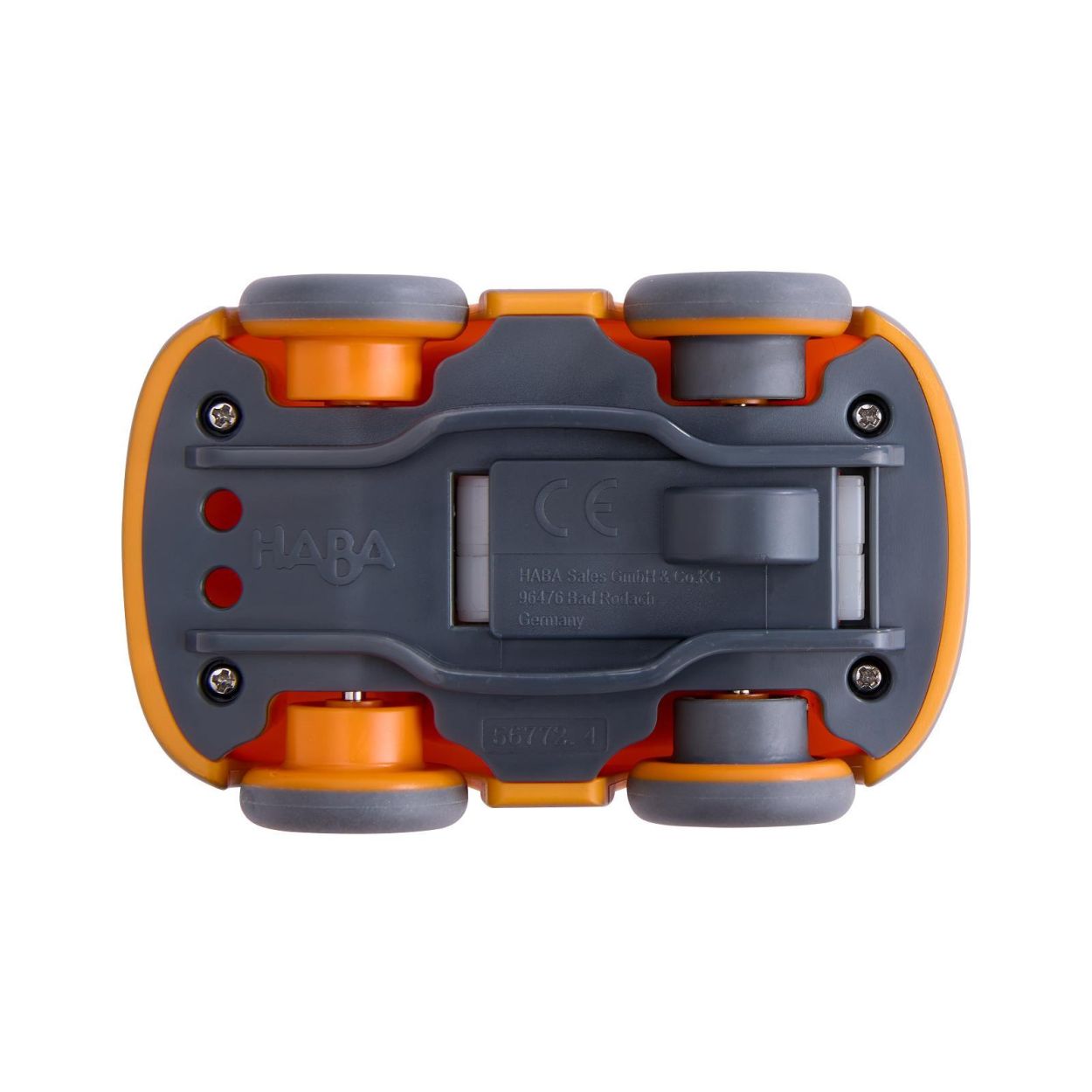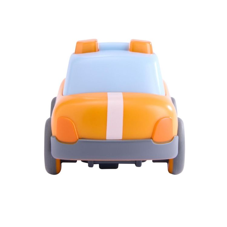 Safety Car van Kullerbü op frictie. Je duwt de wagen met de hand vooruit of achteruit en éénmaal je die loslaat, blijft hij nog verder rijden. Vroem, vroem, ...