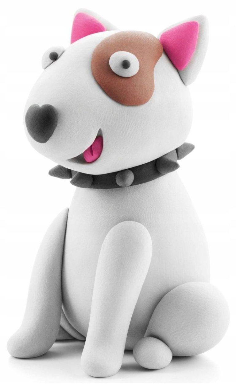 Maak je eigen speelgoed: Zodra je Bull Terrier af is, laat je hem 24 uur aan de lucht drogen. De klei wordt stevig en blijft vederlicht. Je hebt nu een uniek actiefiguurtje om mee te spelen of op je bureau te zetten.