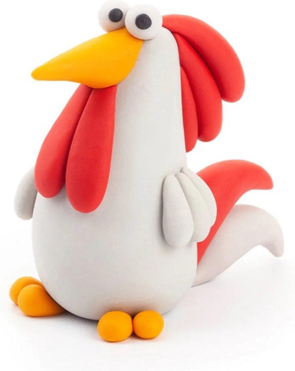 Klei van de toekomst: De klei is superzacht, plakt niet aan je handen en laat geen vlekken achter op de tafel. Zodra je haan klaar is, laat je hem 24 uur aan de lucht drogen. Daarna heb je een echt speelgoedfiguurtje dat hard is geworden!