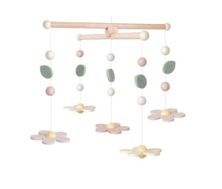 De Jabadabado Wooden Mobile Flower brengt een dromerige en rustgevende sfeer in de babykamer. Deze prachtige houten mobiel met schattige bloemen en zachte pasteltinten wiegt je kleintje rustig in slaap....