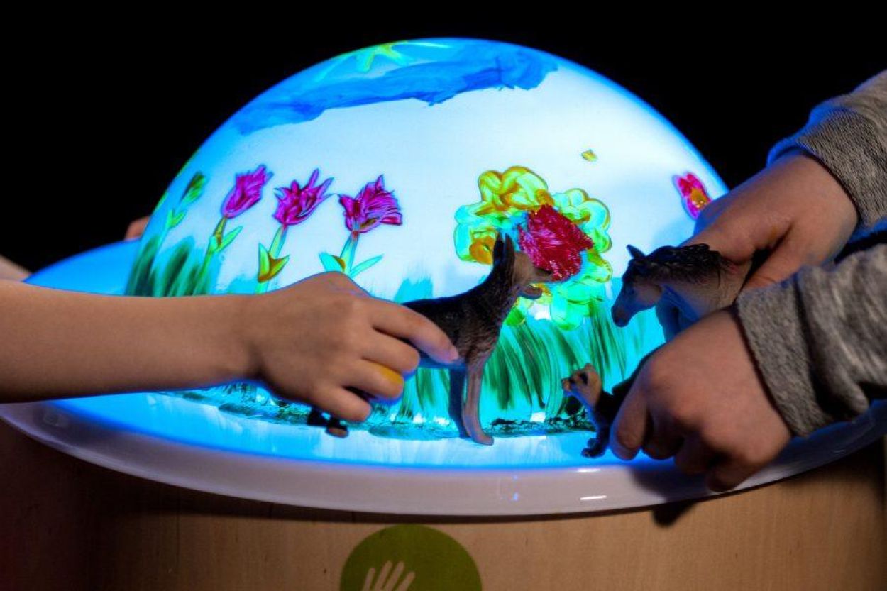 boetseerklei. Wees creatief en geniet! Ondersteboven op de inklapbare standaard geplaatst, dient hij als schaal met een rand voor allerlei zintuiglijke ervaringen. Denk maar aan water, zand, verf, modder, ...
