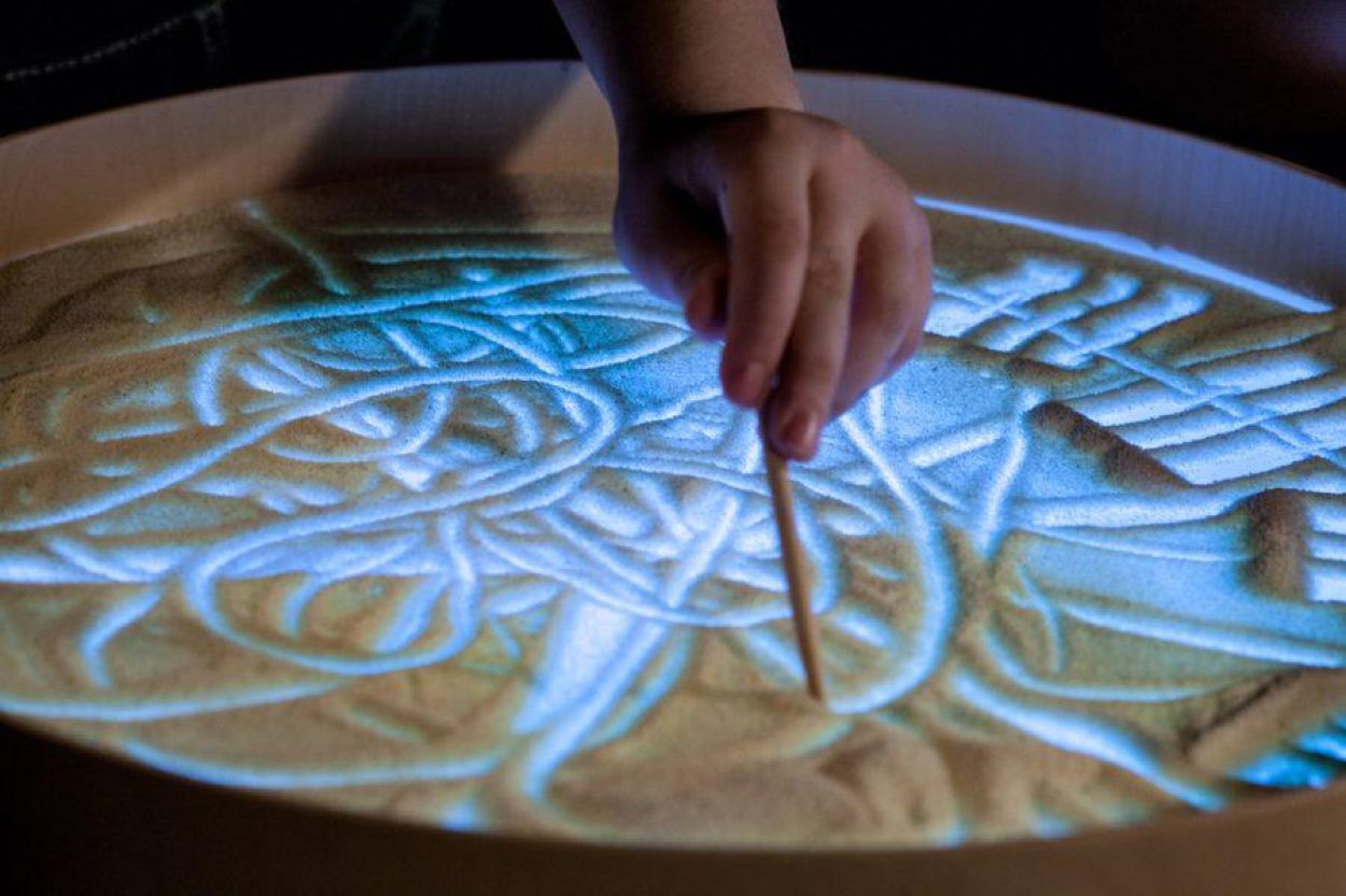 zandschilderen met vingers, kwasten en spatels de fijne motoriek en concentratie.