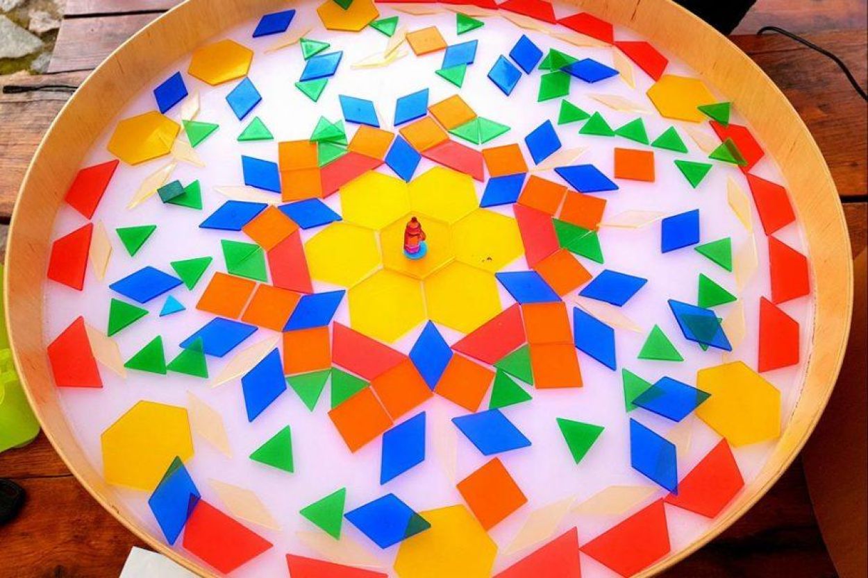 Naast het zandschilderen kan het kind ook leuke constructies maken met het transparant spelmateriaal.