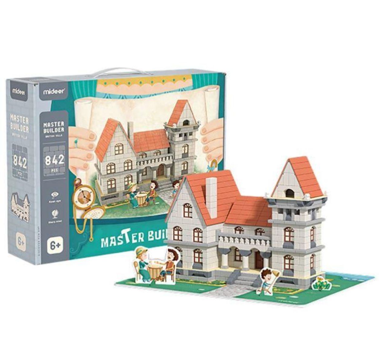 Bouw je eigen Britse villa met de Mideer bouwstenen. Aan de hand van de lijm kan je de steentjes aan elkaar vast 'metsen'. Deze set bestaat uit 842 baksteentjes.