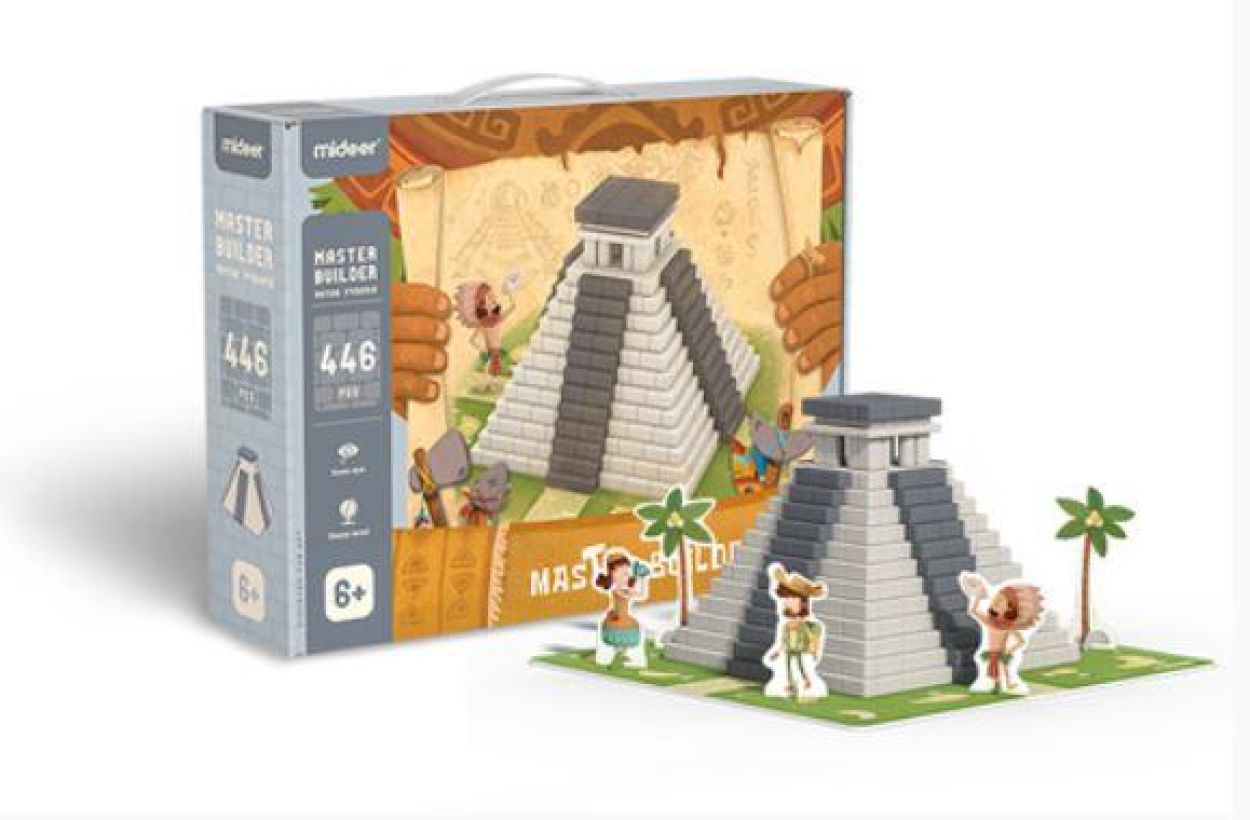 Bouw je eigen Maya Pyramide met de Mideer bouwstenen. Aan de hand van de lijm kan je de steentjes aan elkaar vast 'metsen'. Deze set bestaat uit 446 baksteentjes.