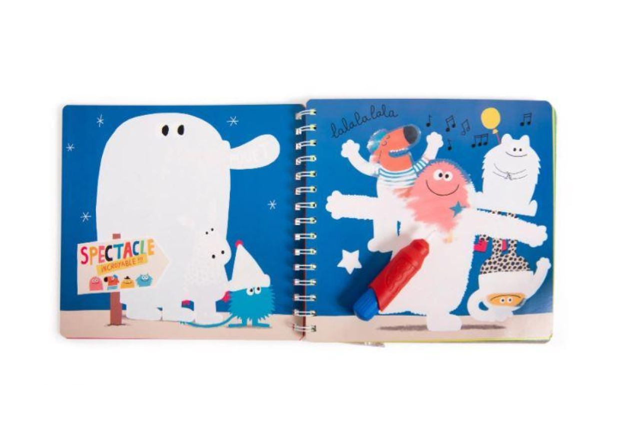 Les Schmouks, te gekke beesten waar iedereen bevriend wil mee zijn. Kleur ze telkens opnieuw in met water en je ziet hen één voor één verschijnen.Vul de pen met water...