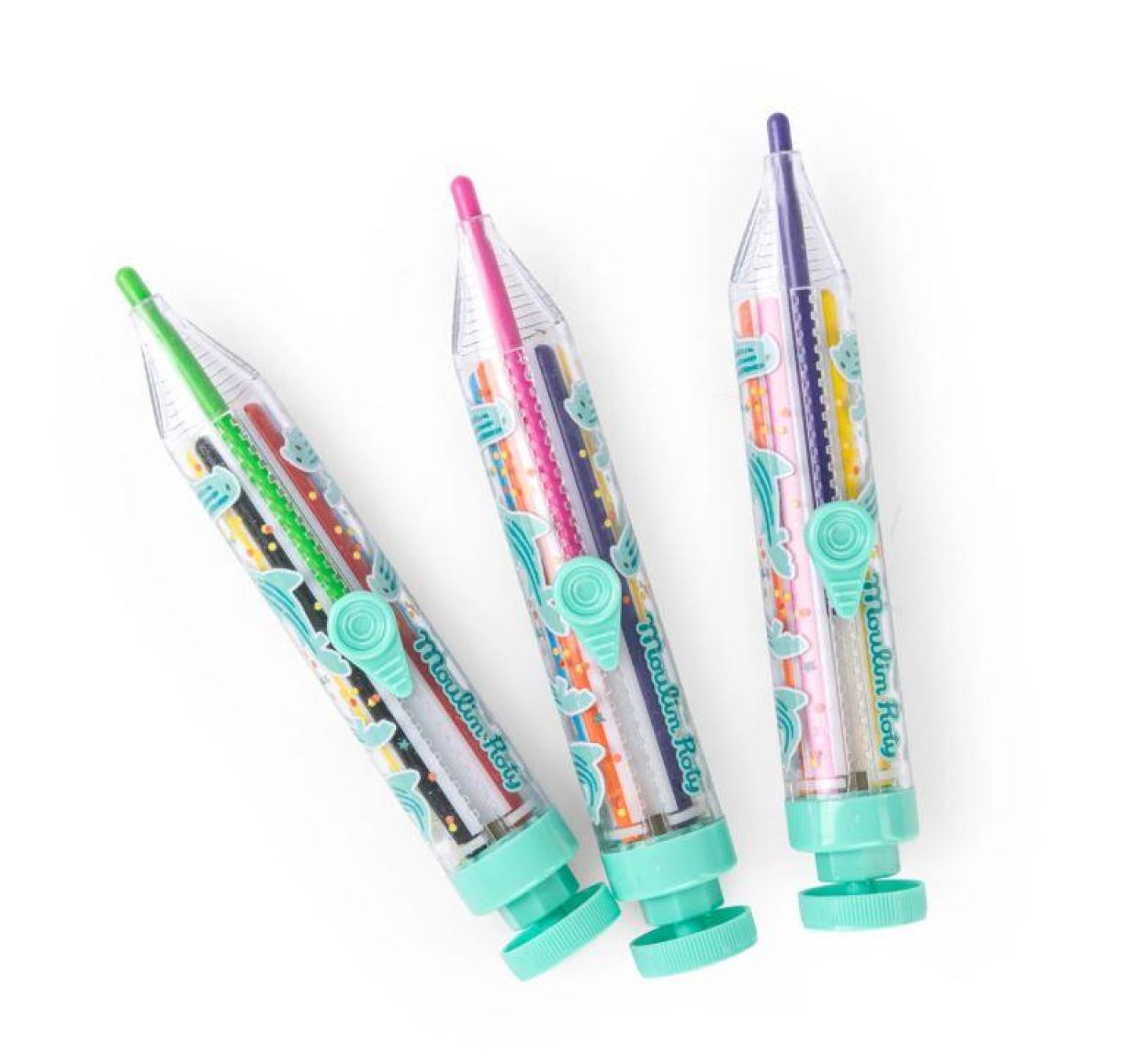 Dankzij het eenvoudige kliksysteem wissel je in een handomdraai van kleur, perfect voor thuis, onderweg of op school. Of je nu een uniek cadeautje zoekt of een leuke aanvulling op de tekenspullen, dit multifunctionele kleurpotlood van Moulin Roty is een echte must-have!