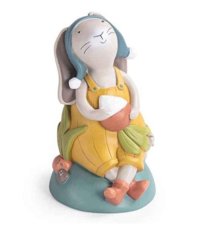 Prachtig decoratiestuk voor op de kinderkamer. Dit schattige konijntje zorgt met plezier voor jouw spaarcentjes. Afmetingen verpakking: 14 x 14 x 22 cm.