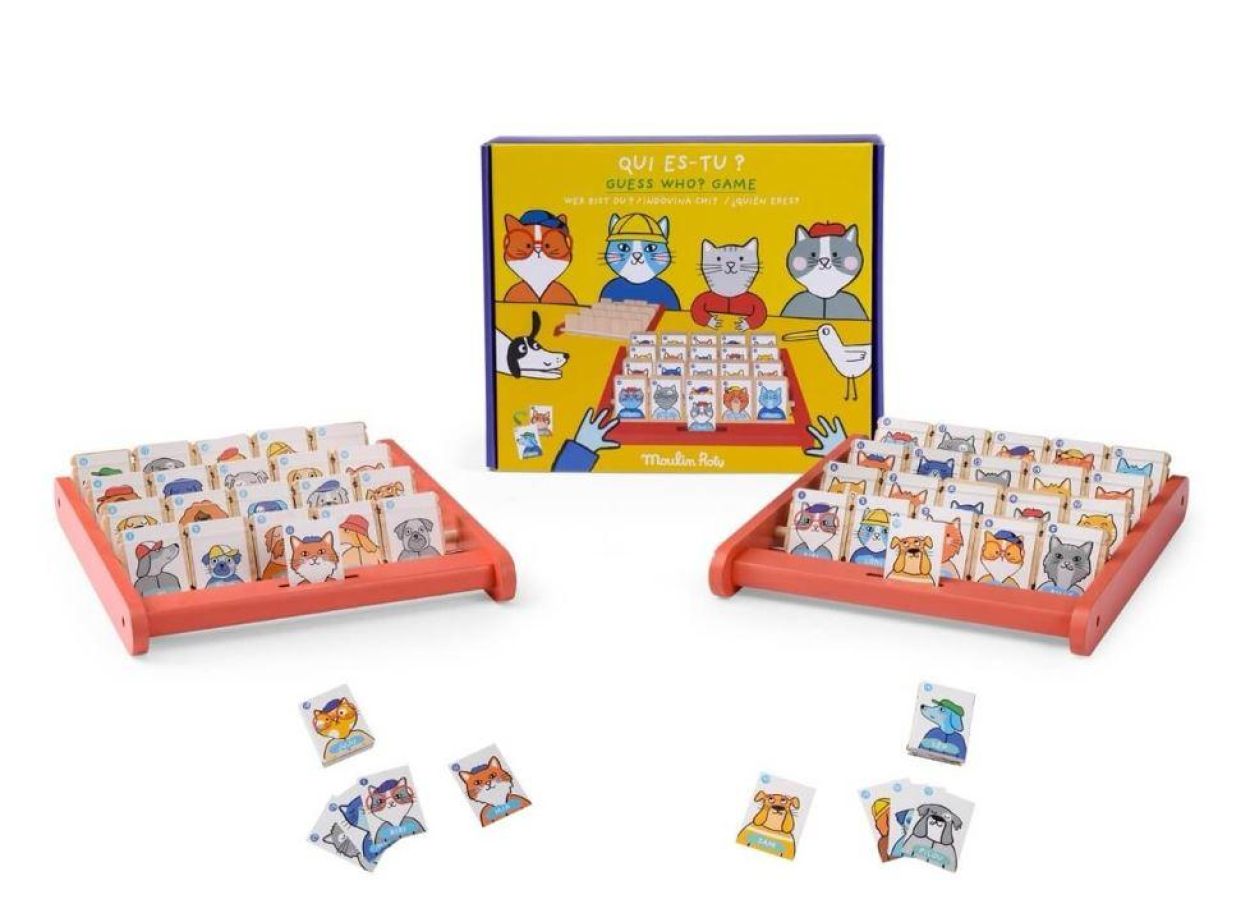 Bordspel "Wie is het" van Moulin Roty. Stel de juiste vragen aan de andere speler om zo snel mogelijk te achterhalen wie het dier is. Wie stelt de juiste vragen?...