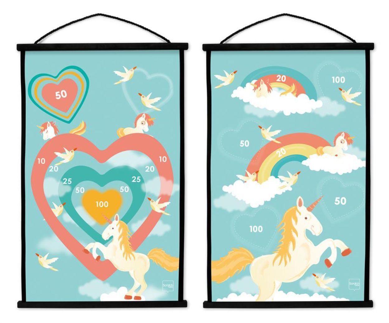 Dartsspel dat aan twee zijden is bedrukt en waarbij je gooit met pijltjes met zuignappen. Veilig voor de allerkleinste darters. Deze darts kan overal opgehangen worden, je hoeft alleen de...