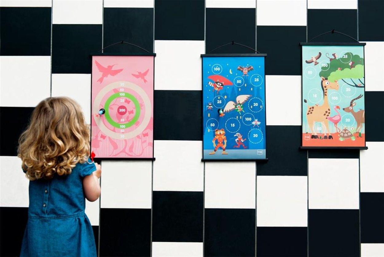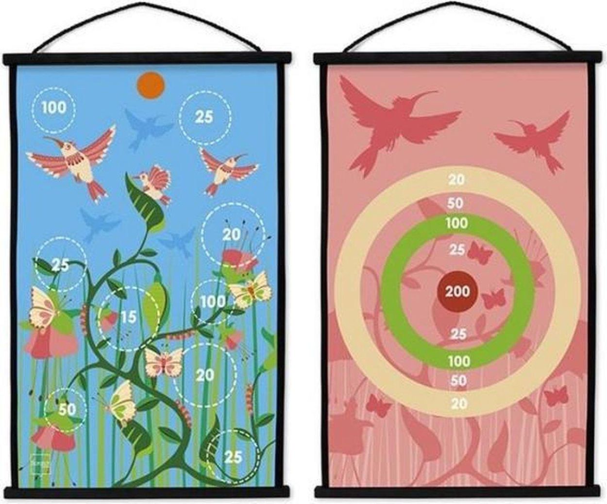 Dartsspel dat aan twee zijden is bedrukt en waarbij je gooit met pijltjes met zuignappen. Veilig voor de allerkleinste darters. Deze darts kan overal opgehangen worden, je hoeft alleen de...
