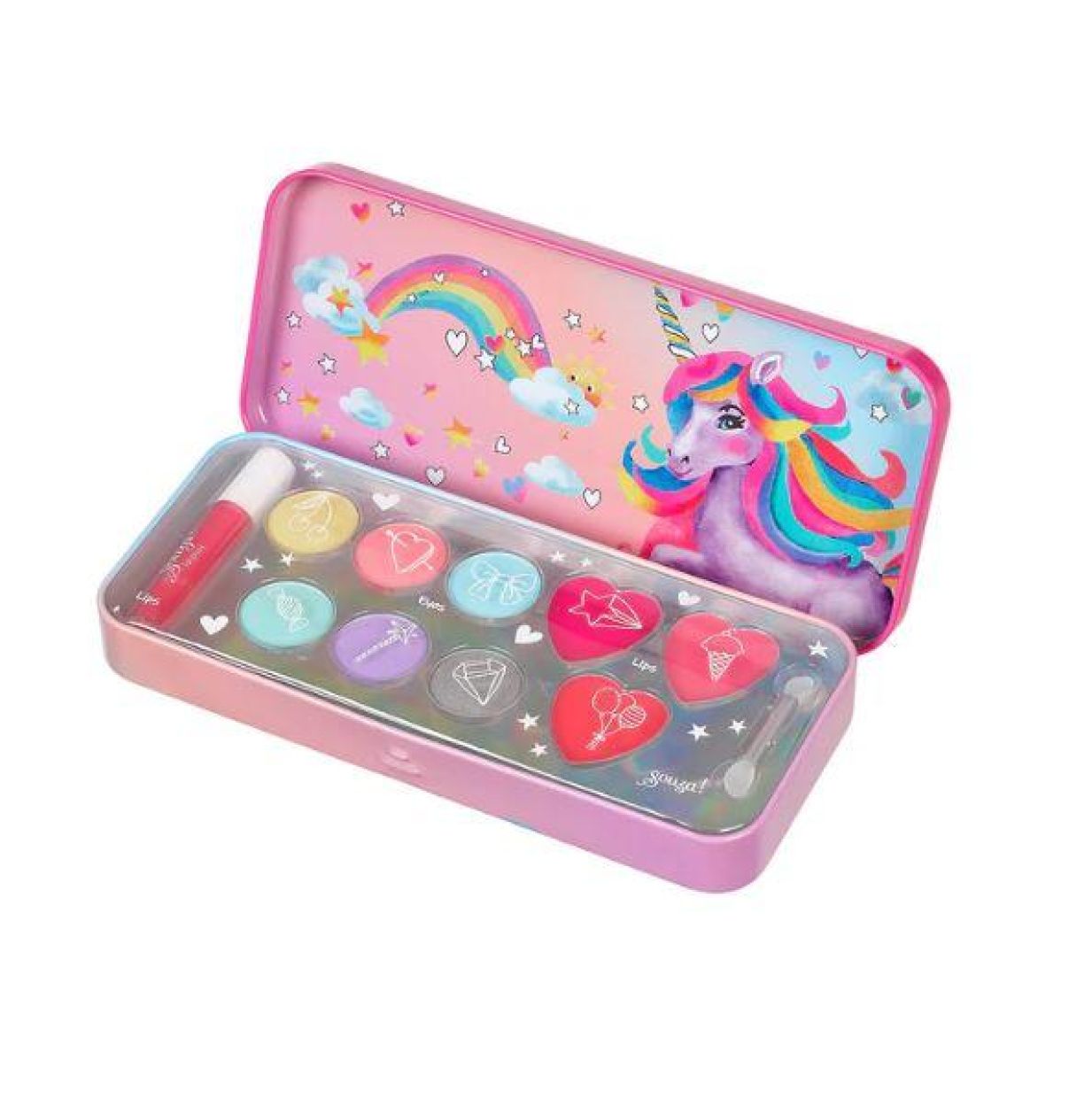 Ontdek de betoverende Make-up case Unicorn, gevuld met sprankelende oogmake-up, zachte blush en glanzende lipgloss in prachtige zomerse kleuren. Perfect om je look een magisch tintje te geven en je...