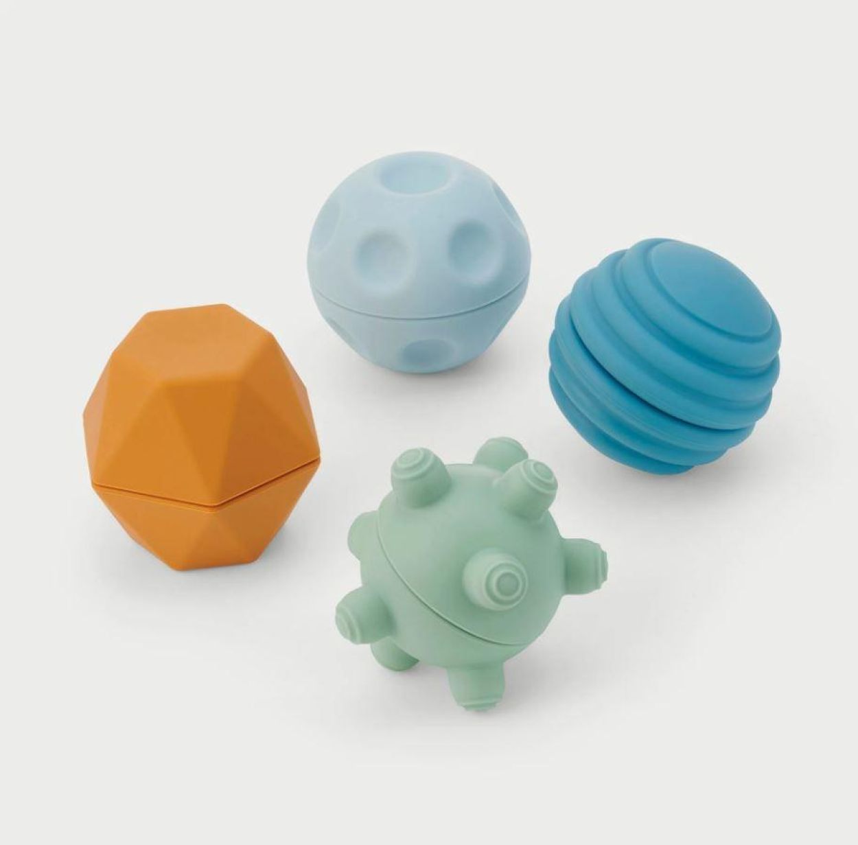 Stimuleer zintuiglijke ontwikkeling en spel met deze unieke set van 4 sensorische ballen, speciaal ontworpen voor nieuwsgierige handjes vanaf 12 maanden.