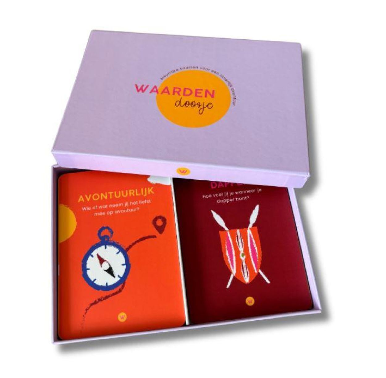 Het Waardendoosje bevat 42 kleurrijke waardenkaarten boordevol rakende vragen die uitnodigen tot open gesprekken, zelfreflectie en betekenisvolle interactie. Ideaal voor gebruik thuis, in de klas of in coaching.