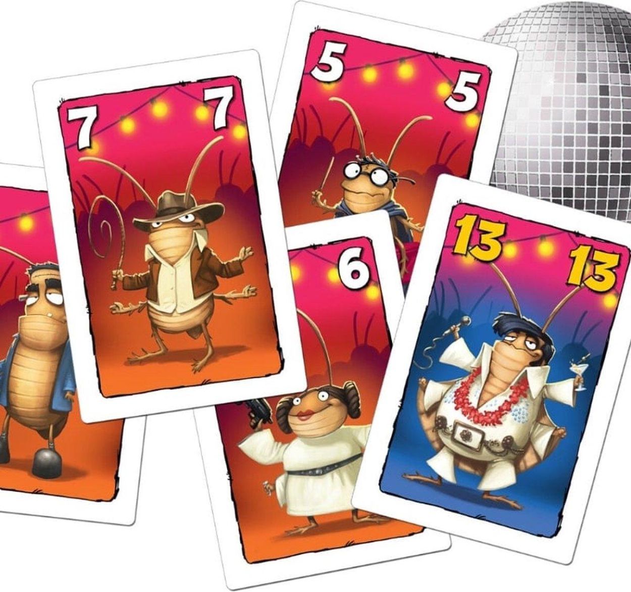 Party Bugs is een swingend kaartspel waarin het feest losbarst zodra het licht uitgaat. Maar wie zit er te wachten op dansende kakkerlakken in huis? Probeer het grootste ongedierte naar...