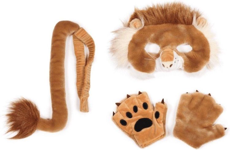 Deze verkleedset van Wild & Soft bestaat uit een masker, een staart en bijpassende handschoenen om te veranderen in een echte leeuw!