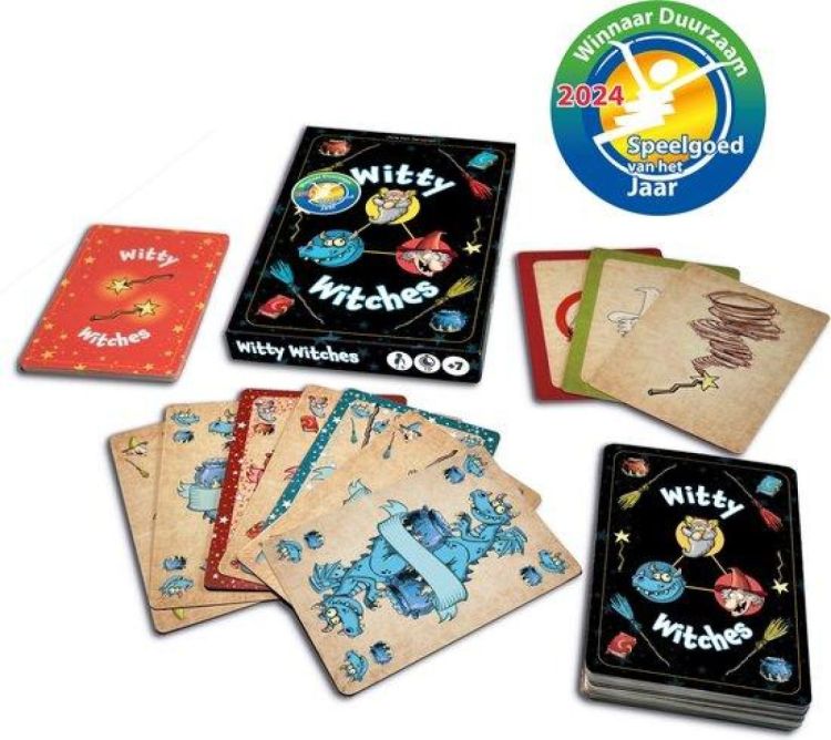 Loods je magische figuren als eerste binnen op het feest met dit kaartspel Witty Witches. Maar pas op, sommige personages kunnen toveren.